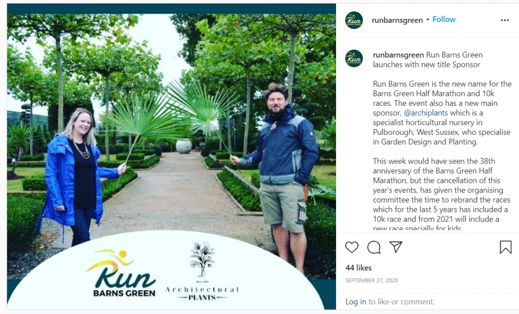 Vernon Jennings, Chairman of the Run Barns Green Committee, commented, “We are delighted to welcome Architectural Plants as our main sponsor. Their close links and understanding of our event has been so refreshing and they have shown tremendous enthusiasm and creativity in how they have approached this partnership which I am sure will be very successful. The new sponsorship with Architectural Plants is very timely as we launch our new Run Barns Green name and logo. The Barns Green Half Marathon has become a very established event in the local area over the last 38 years.”