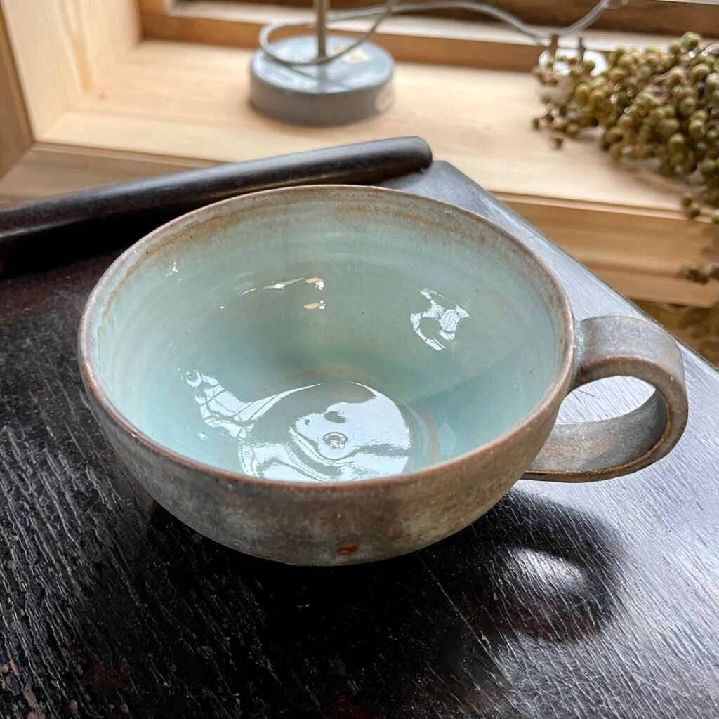 Beautifully hand thrown. There are four different internal glazes to choose from. Individual in appearance, all slightly different finishes. Perfect for ceramic enthusiasts and tea and coffee lovers.