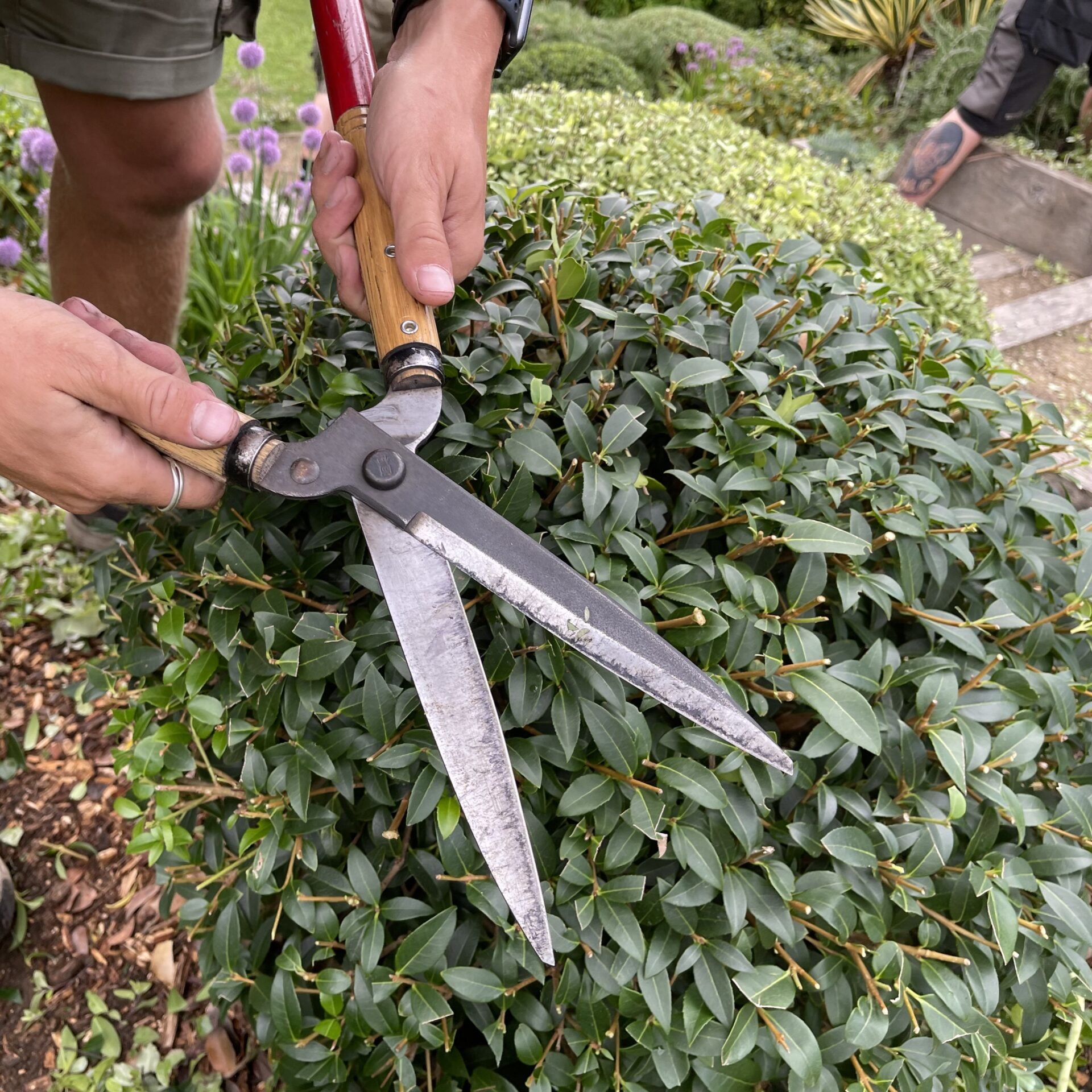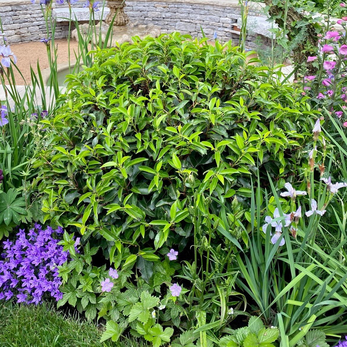 We stopped selling box in 2016 and have been trialling a range of alternatives since then, that we now use in our nursery estate gardens and in our customers’ Garden Designs. Choosing which ones are right for your garden will immediately throw up a number of questions: where is your garden, is it sunny or shady, wet or dry, exposed or sheltered? Is it a formal design, a cottage, classic or contemporary garden? What’s the drainage like? Was the Box used for a large or small hedge, a ball, a unicorn or a free form tree? How much time do you have, both to grow it and to maintain it? In general, proportion and perspective dictate that the larger the hedge/ball/blobbery/etc, the larger the leaf that can be used. Don’t panic! Contact us and we’ll help you find the right solution for your garden.
