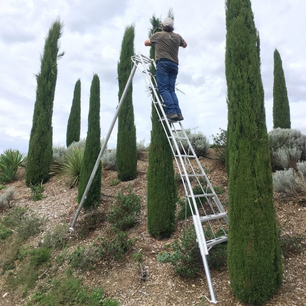 We also sell and use nothing else but Niwaki Ladders. Perfect for hedges, topiary, fruit trees and all other garden and DIY jobs where you need to work safely at height. The three legs and wide flared base combine to make these by far and away the safest, most stable and practical step ladders available – even on sloped and steps, thanks to the extendable 3rd leg (adjusts up to 2′). Hand welded in aluminium, they’re amazingly light, with double rungs for comfort and clawed feet for extra grip. We find them utterly essential for getting to our Cupressus sempervirens, Niwaki, and topiary, and for all the other hard-to-reach parts of our nursery and our customers gardens.