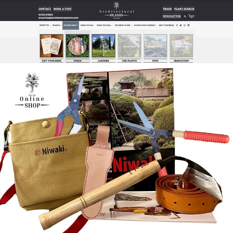 We don’t mind admitting that we have launched our online shop with a certain amount of trepidation. In the past, plans to provide our customers with an online mail order service have been hindered by all sorts of questions – not least, how to overcome the often unsociable nature of e-shopping or indeed how to send you our plants (living things) so that they arrive in perfect condition. However, we now believe we’ve developed a system that will allow you to hunt for all our available products and provide you with sensible categories for their safe delivery. You can now get hold of all the tools, ladders, irrigation components, lifestyle accessories and AP Gift Vouchers you might possibly want from our online shop.