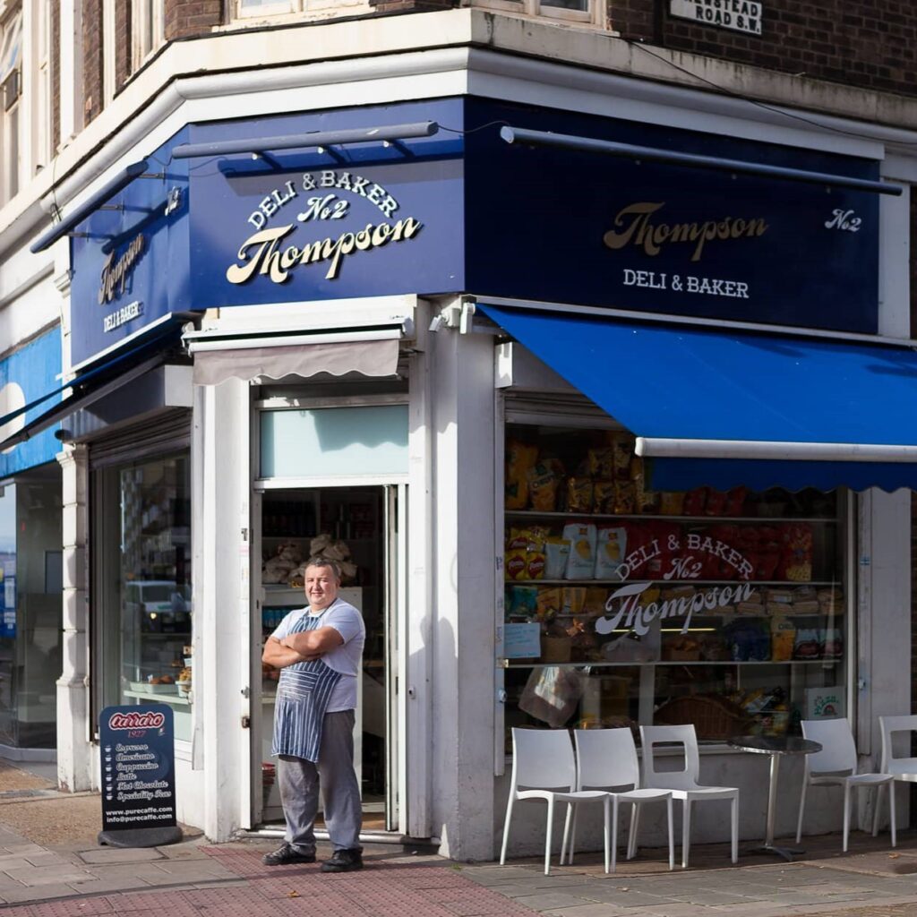 Specialist deli, phenomenal bakery, sandwiches and much more. Good stop on the way in to or out of London. Fluffy, fresh donuts and Garlic stuffed olives are a winner.