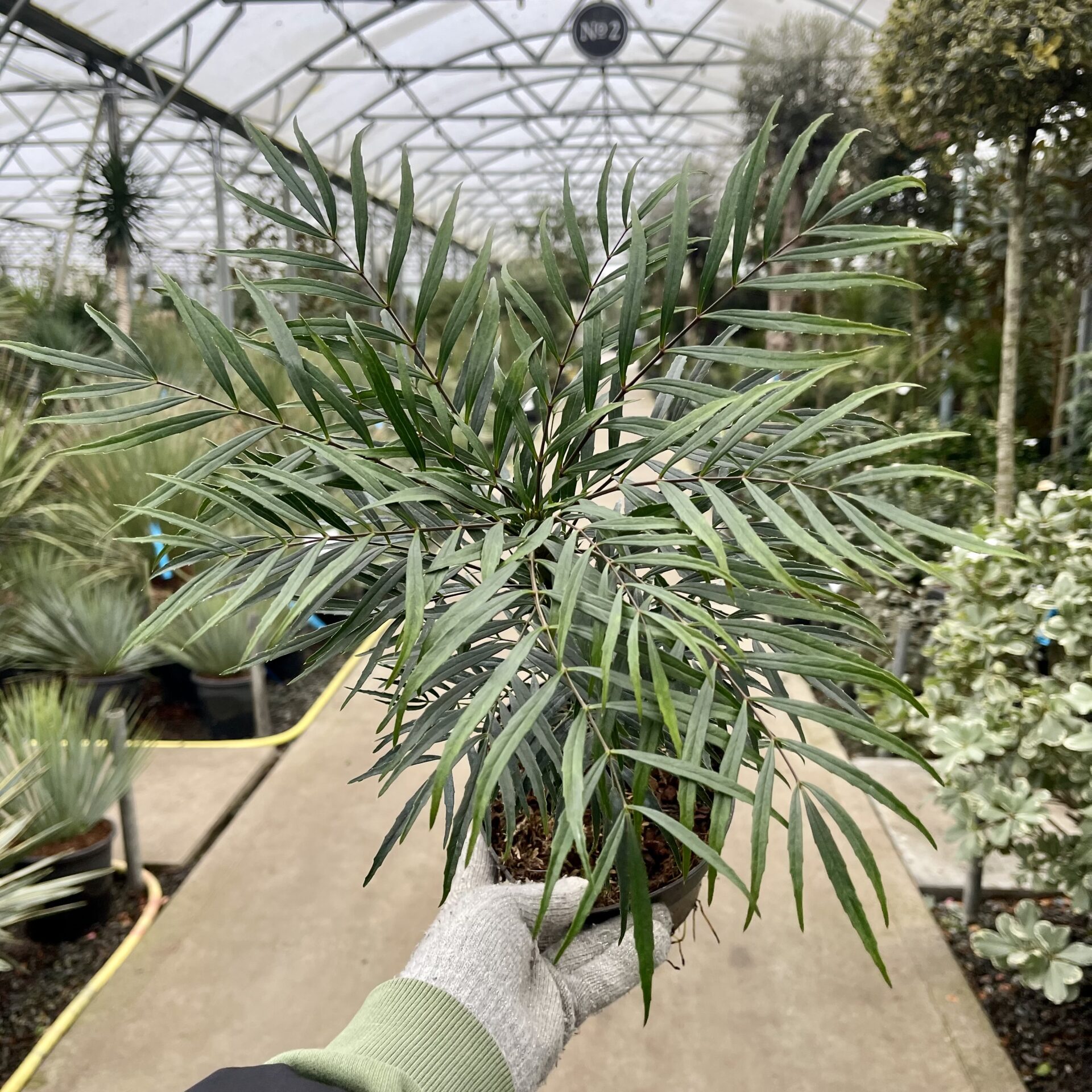 The defining tropical statement that’s great for differing heights, making a focal-point, and instant architecture. Trachycarpus wagnerianus has a dramatic and defined silhouette that is both angular and feathered. If planted as a standalone specimen it can rule majestically over your new garden and will create a definite marker point from which to build your evolving planting plans around. It’s versatile, sitting brilliantly alongside contrasting textures and forms in a mixed border. Planted like this, it will add a bold and dramatic sharpness to break up a composition of more blended textures. Easy to care for, their strong spiky fronds are remarkably wind-resistant so if your new site is somewhat exposed it won’t suffer from the bed-head messiness of other fan-like palms, and aside the very occasional removal of a spent frond, it will remain neat and tidy at all times. Though happiest on deep and fertile ground, it will grow in any soil in full sun or part shade, and very very slowly, over 15 to 20 years a waist-high plant could possibly reach about 25 feet.