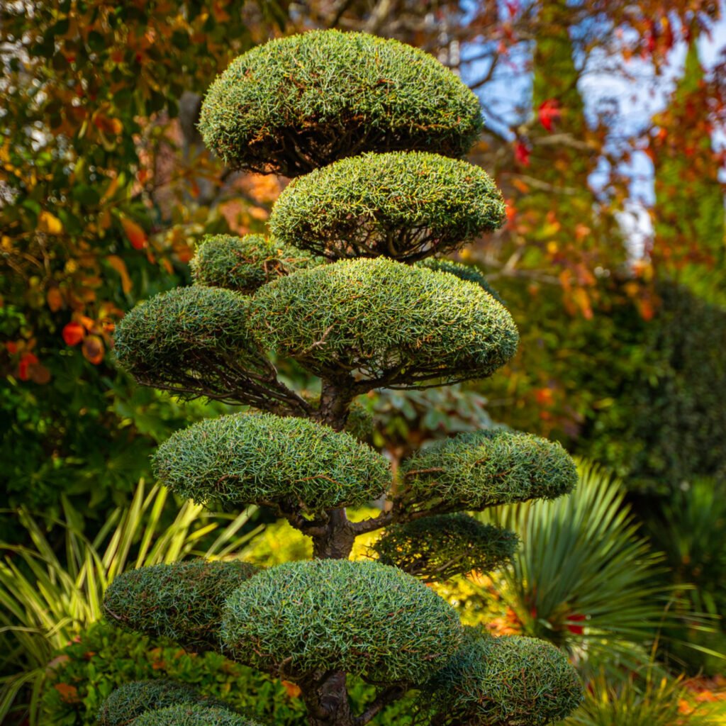 Instead, think classic and classy lollipops and soft niwaki cloud shapes: elevated in the form of standards and half-standards. Or think undulating and fanciful in the form of mushroom shapes and pillowy blobs. All simple, all elegant, but all impactful and with just the right amount of whimsy after some creative maintenance.