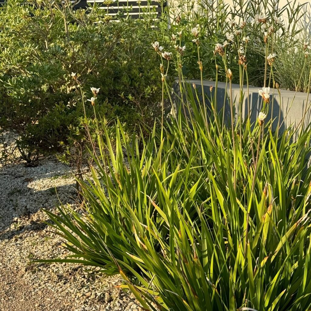 Come summer, the New Zealand Flax develops tall thin stems up to around 10 ft tall upon which flowers tower above the contrasting foliage. A true sun lover, it prefers a south or west-facing spot and well-drained soil. Suitable for containers, but perhaps most at home in a gravel garden.