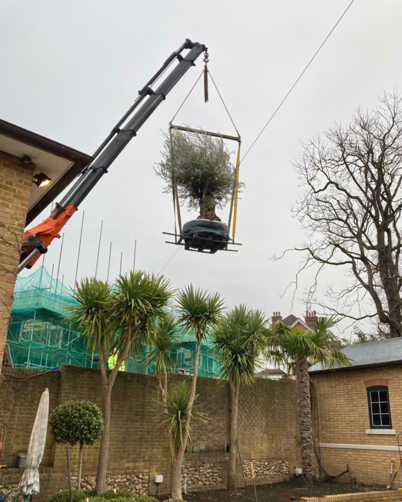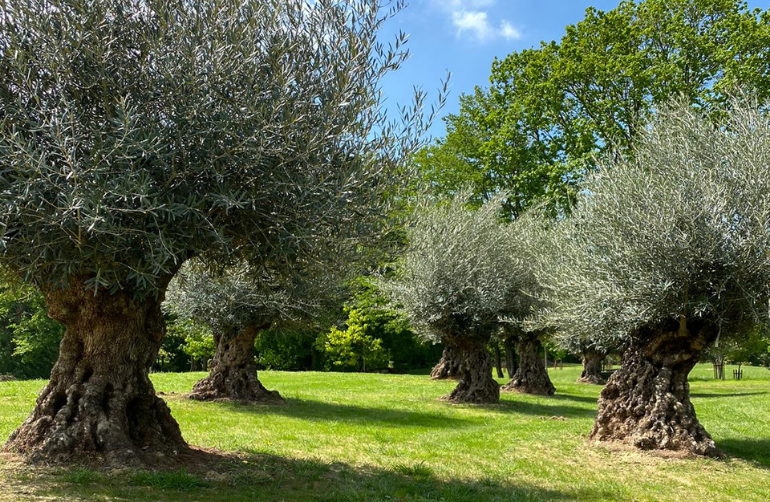 Our Olives recently planted in Surrey – plenty of sunlight and protected by surrounding trees