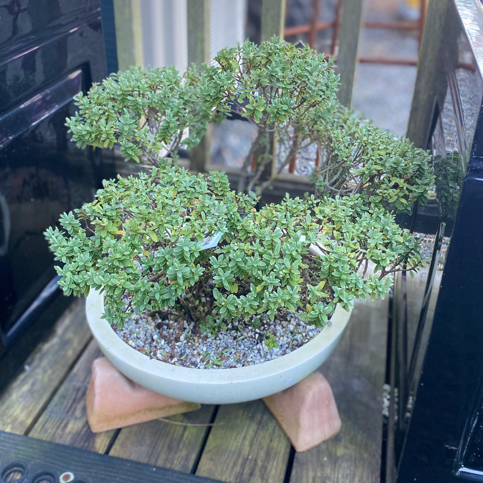 A great little blobby shrub that has been clipped and enhanced to create this wonderful mini bonsai.