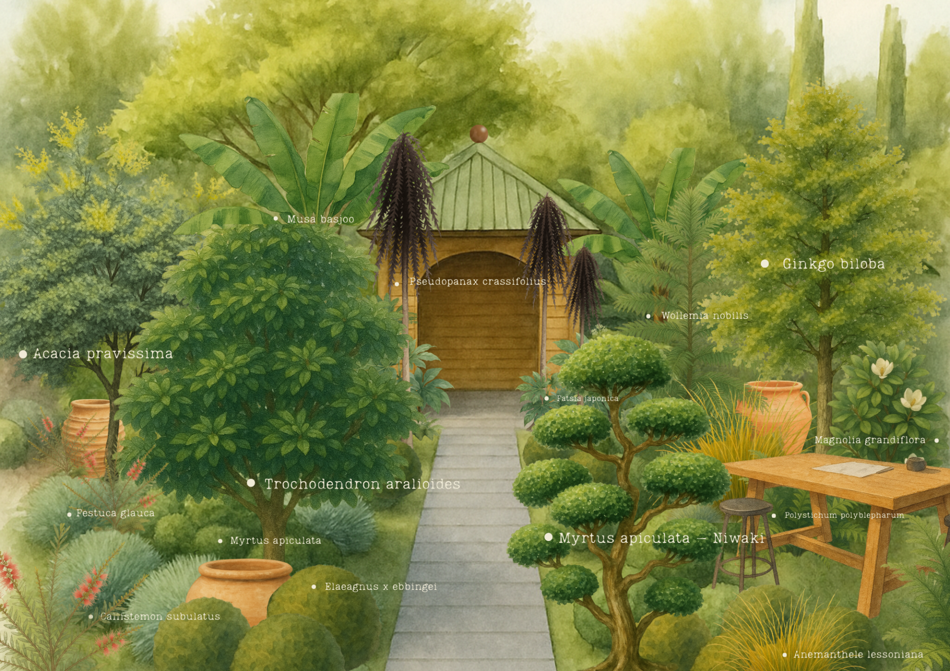 Have you seen our traffic light hiding between the Wollemia Pines? We take an enormous amount of pride in our displays on the nursery and in the quality of our plants. On our nursery and in our show garden you will find everything clearly laid out and labelled with our traffic light hardiness rating system.