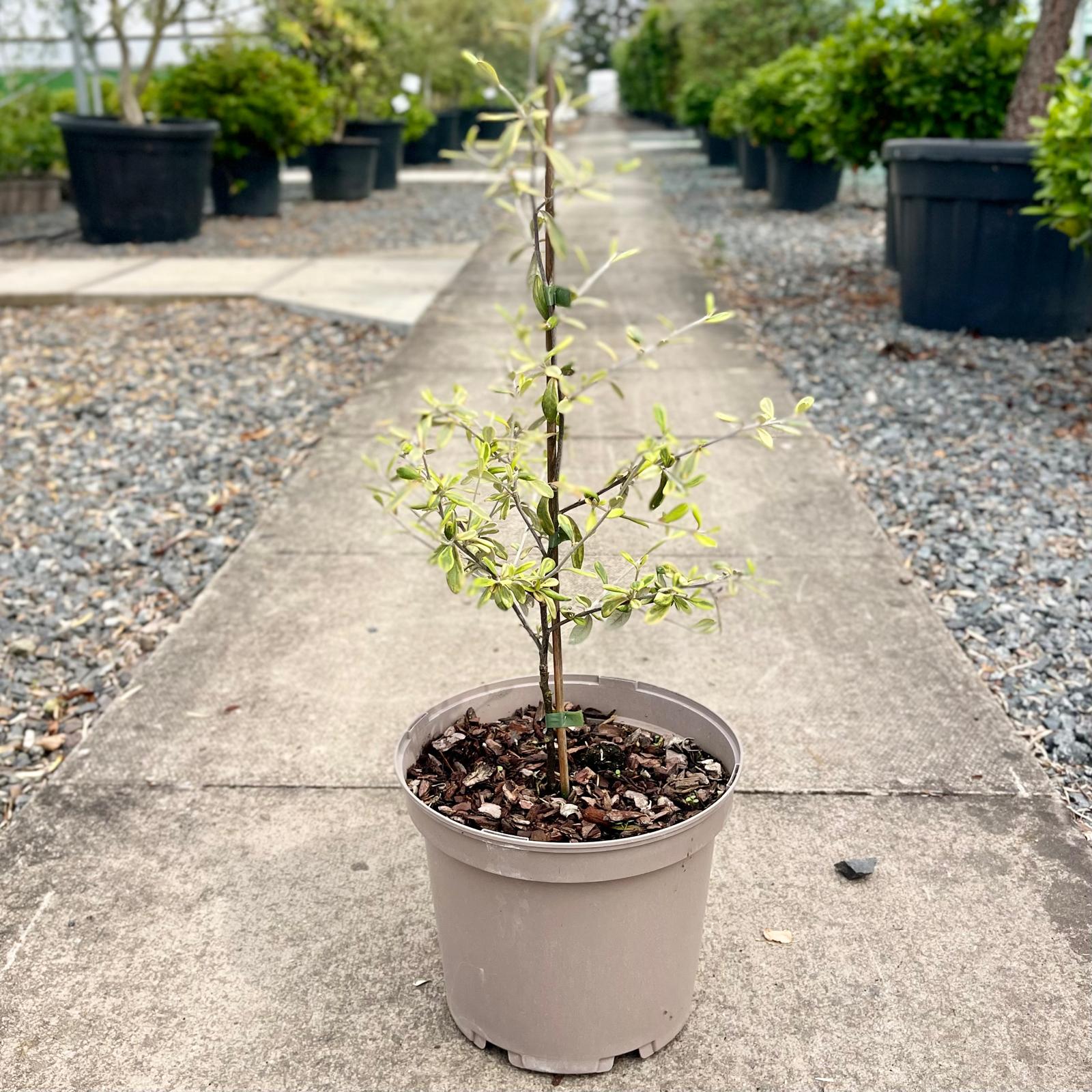 A small weeping evergreen Mimosa tree with unusual triangular leaves and yellow flowers in March. Best in full sun (to get the lovely shape) and reasonably well drained, but not chalky, soil. These plants are grown from seed so they will need to mature for about 3-7 years before they flower. When the flowers do appear they are yellow, fragrant and copious.