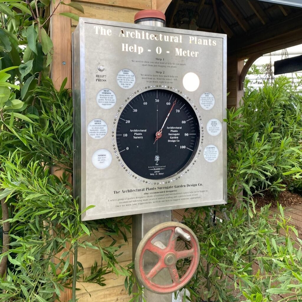 Designed by the founder of Architectural Plants, Angus White in West Sussex, the help-o-meter, was created as a play on seaside games you might find on a pier, to engage visitors at the nursery and help us to accompany them on their journey, whether it be planting, garden design or creative maintenance.