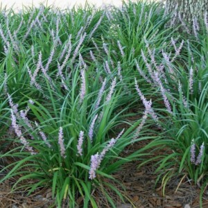 Liriope thrives in full sun or shade, providing a versatile groundcover under trees or a soft border for paved areas and foundations. Flowers may be purple, lavender or white, and it blooms from July to the end of August. (Photo by MSU Extension Service/Gary Bachman)