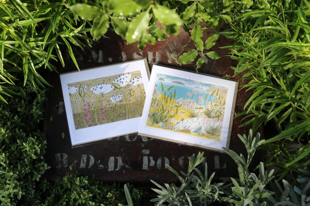 Our range of cards, wrap and notebooks are produced by artists, Angie Lewin and Louise Harding. We can scarcely get them on the shelves fast enough.