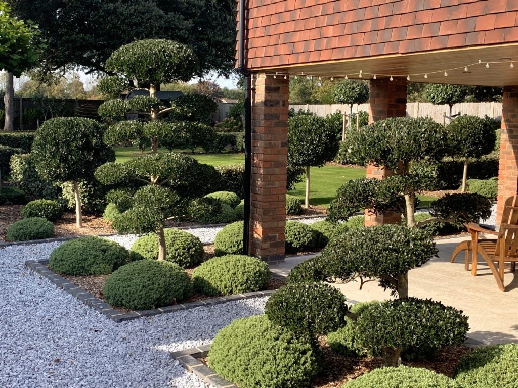 Our homegrown favourites include, Phillyrea latifolia, Myrtus apiculata and Podocarpus salignus. Other ‘Niwaki’ with equal architectural verdancey which we love are Ilex crenata, Taxus cuspidata and Pinus sylvestris.