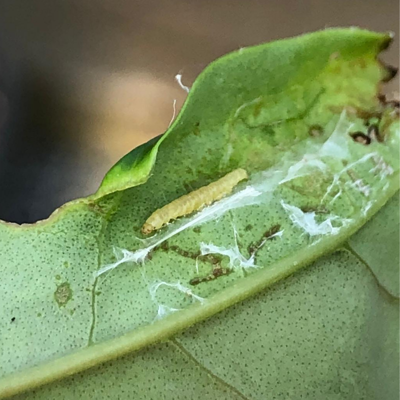 Some caterpillars will create fine silky webbing to hide in on the plant and/or to bind the plant’s leaves together to hide in. This is particularly true of the Light Brown Apple Moth and Tortrix Moth.