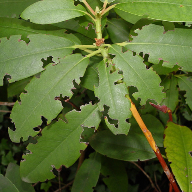 When caterpillars excrete their waste, it appears as little brown balls called frass. This will either be on the leaf surface or sitting in the nooks/crevices created between the leaves and the stem. The larger the caterpillar, the larger the pellets of frass. Plants are often able to detect insect attacks and raise their defences accordingly; however, some caterpillars’ chemicals secreted can mimic those of a fungal attack instead, leaving the caterpillar free to keep eating.