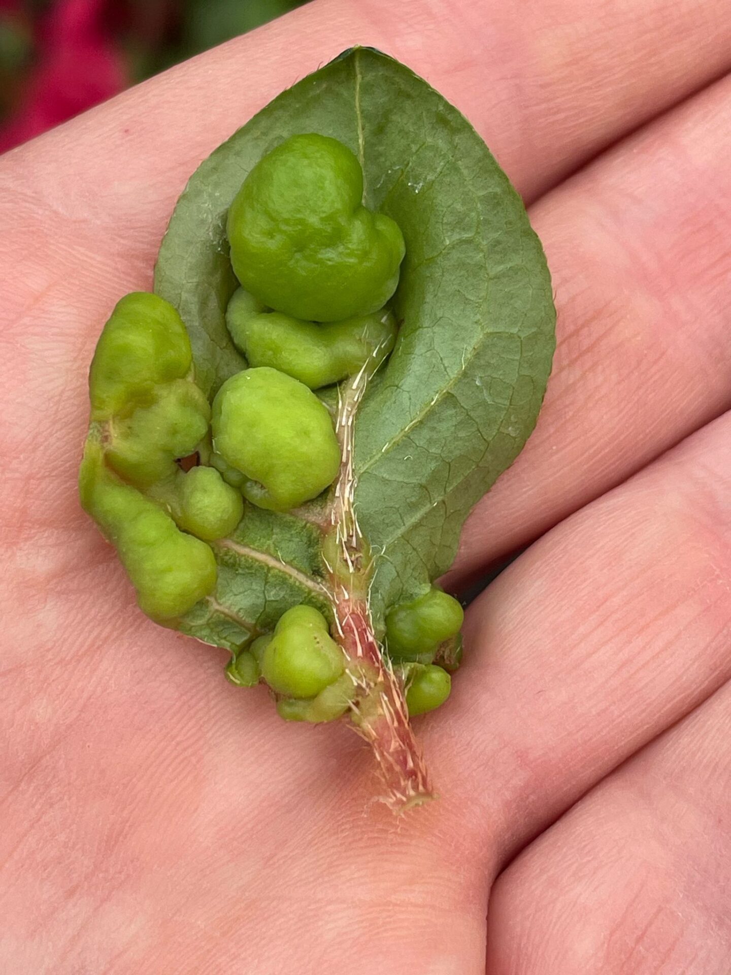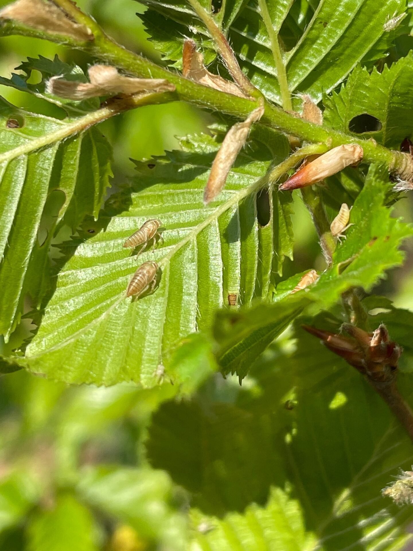Leafhoppers are very small (3mm long), pale-green insects that are hard to spot until moved. If disturbed, they jump off the underside of the leaf and very quickly fly to the next available leaf surface – you’ll see something move, but won’t be able to see what it was or where it went.