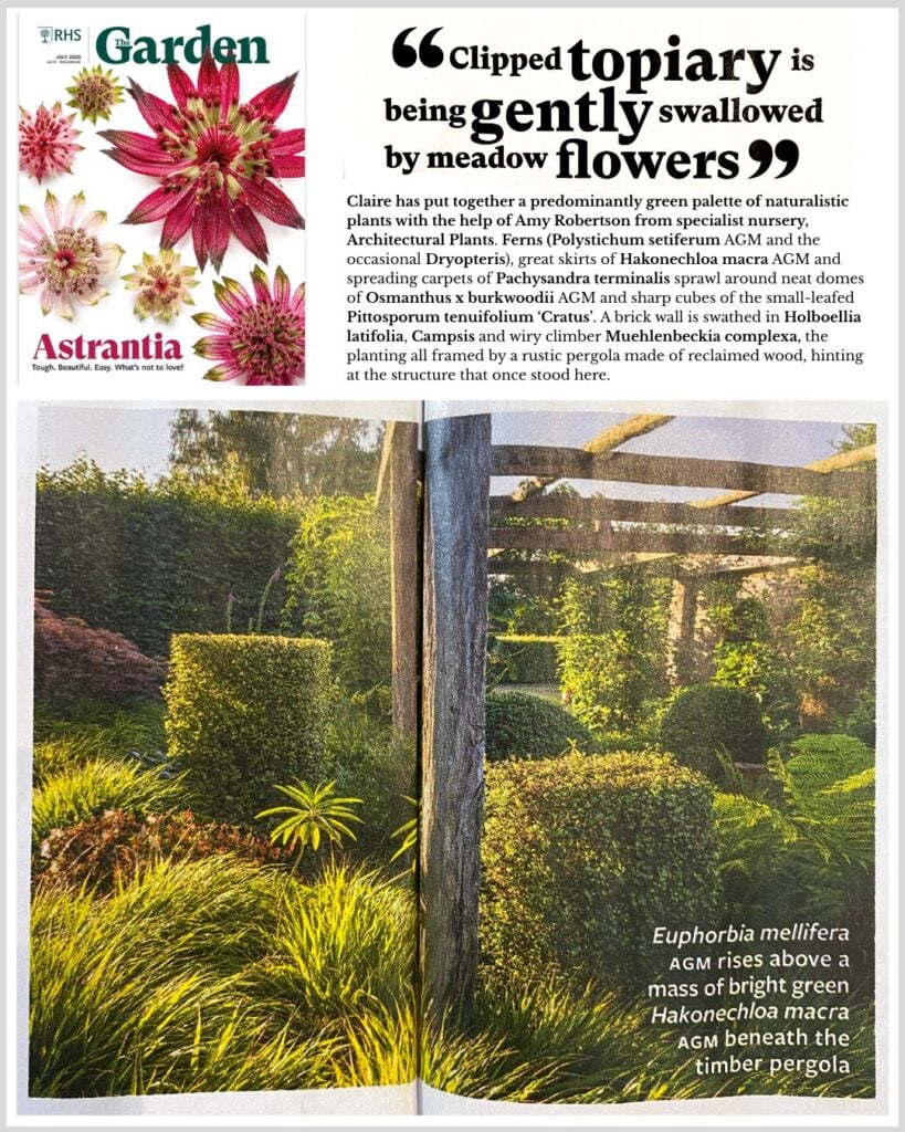 Lovely little mention in RHS The Garden Magazine this July courtesy of @clairemerrimandesign The feature, ‘Call of The Wild’ by Jodie Jones is a fantastic exploration of Claire’s expansive garden. Our contribution focused on supporting Claire create her Shade Garden with plants from our nursery and design & planting advice from our Senior Garden Designer, Amy.