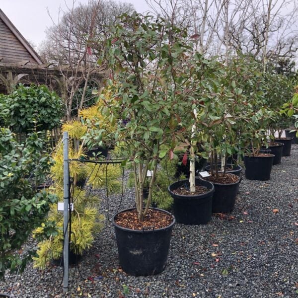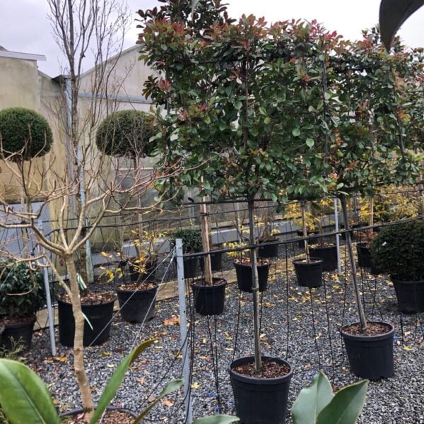 Sun or semi-shade in fertile well-drained soil. Protect from strong, cold winds. This little tree has the remarkable ability to produce its new growth in what appears to be the middle of winter (February/early March). With any other plant this new growth would be blackened immediately by the next frost – in the case of Photinia glabra, it remains totally unaffected by frost.