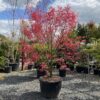 This is a spectacular deciduous acer and one of our favourites from Japan. We always display ours in prominent positions on our nursery allowing the light to best illuminate the leaf colours. Vibrant sorbet pink leaves in the spring turn to green with fuchsia-kissed margins during the summer months. Finally, the leaves turn bronze and scarlet in an autumnal flourish that really brings the house down. A centre stage specimen in our Acer House, certainly.