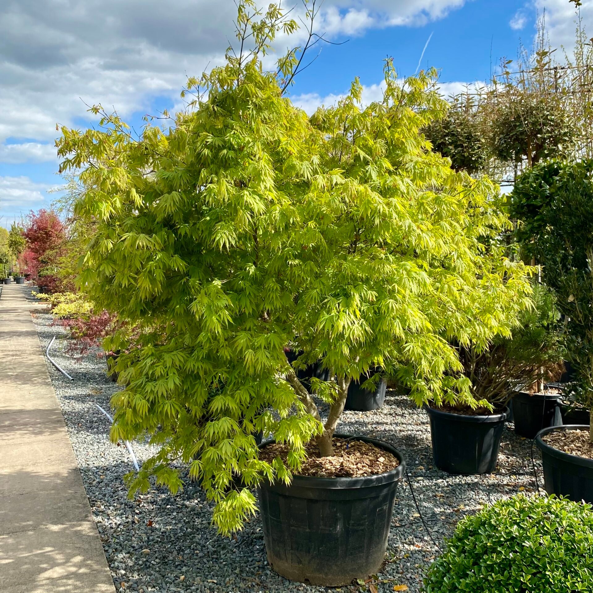 This Acer has a harmony of form and stature that ensure a constant popularity: broad but not too muscular, open but not too sparse. Finely-branched and generously bedecked in the deeply serrated leaves typical of the Acer group, we feel this one in particular is really special and appropriate for all manner of settings. Cottage garden? lovely. Formal city garden? Absolutely. A splurge of peppy colour, all through the year, to lighten a mixed composition of evergreen shrubs and taller trees? Bingo.