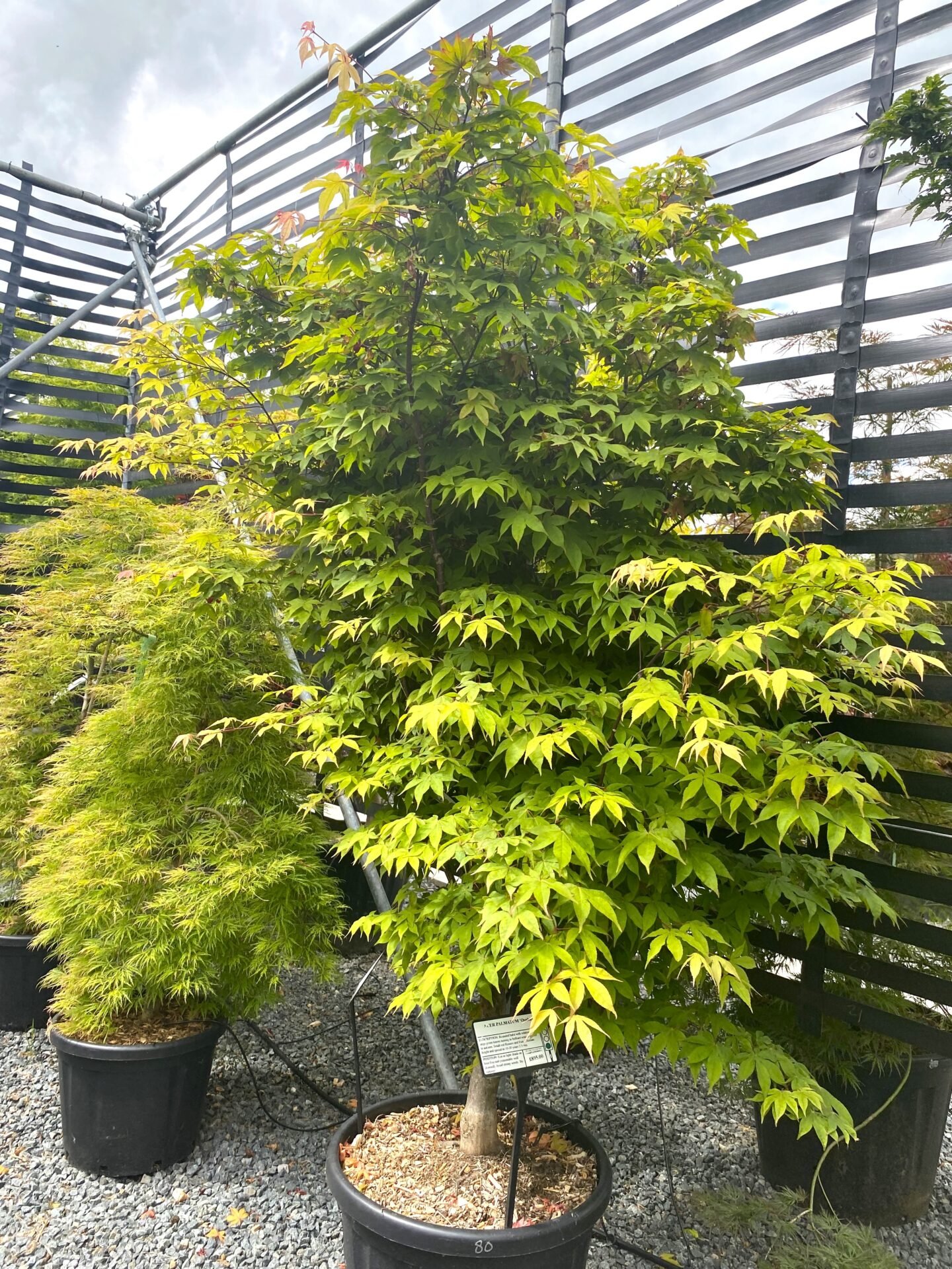 A hardy, deciduous shrub or small tree with an open and rounded habit to about 4m in height and spread. ‘Osakazuki’ has seven lobed green foliage in spring and summer, transforming into a blaze of fiery scarlet in autumn. Many believe they have the most intense, long lasting scarlet autumn colour of all the Japanese Maples. Ideal for the smaller garden, yet still capable of creating autumn drama in a large garden. Contact us for plant availability and sizes.