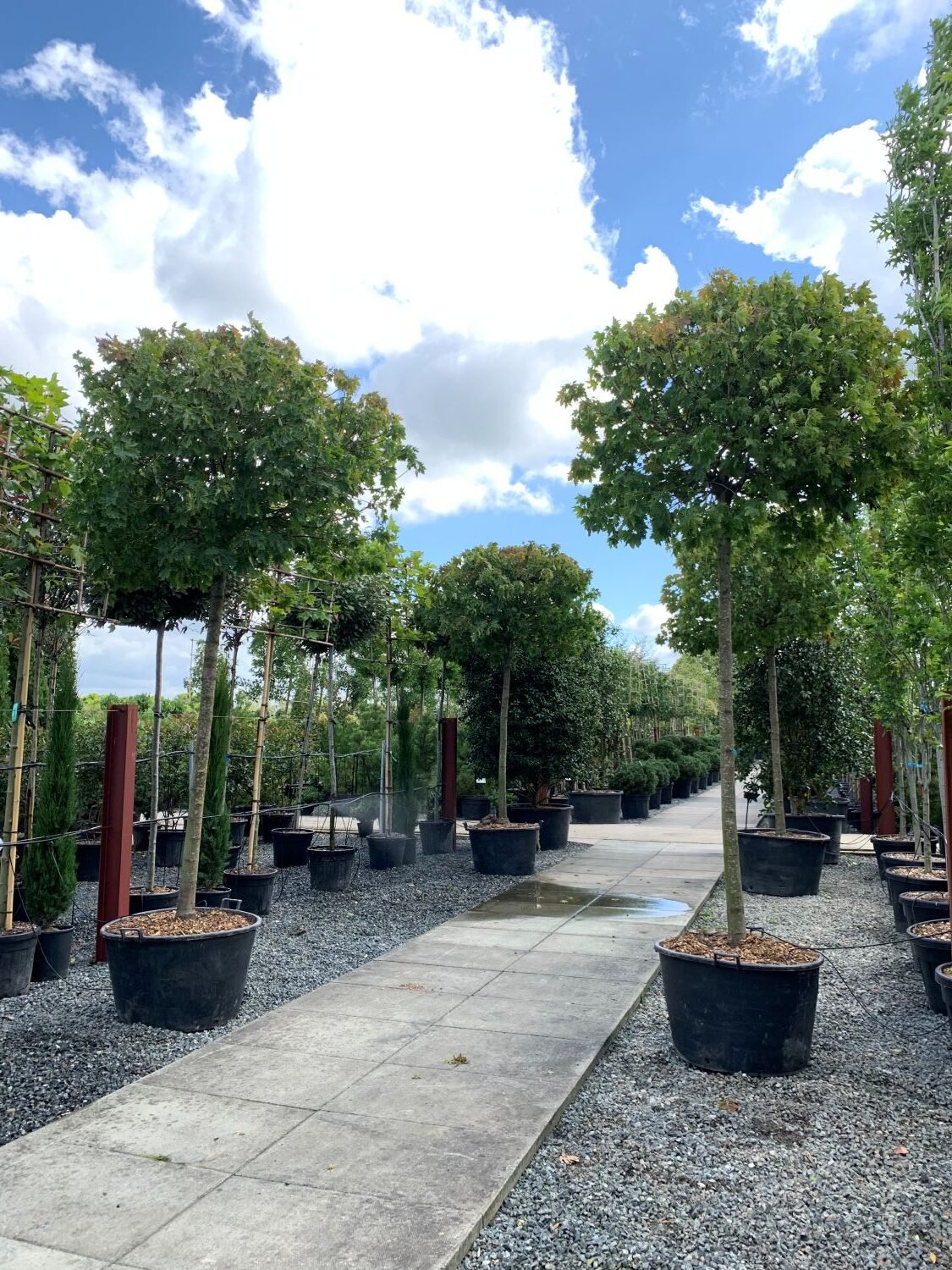 This is a dwarf form of the Norway Maple (Acer platanoides) grafted onto a 6ft trunk of the normal Norway Maple tree. The effect is neat, formal and manageable. The top can grow to almost 20ft across but the whole top can be clipped occasionally (in late winter before the new growth begins) to retain the formal and manageable look - including the underneath - to make walking underneath the branches possible.