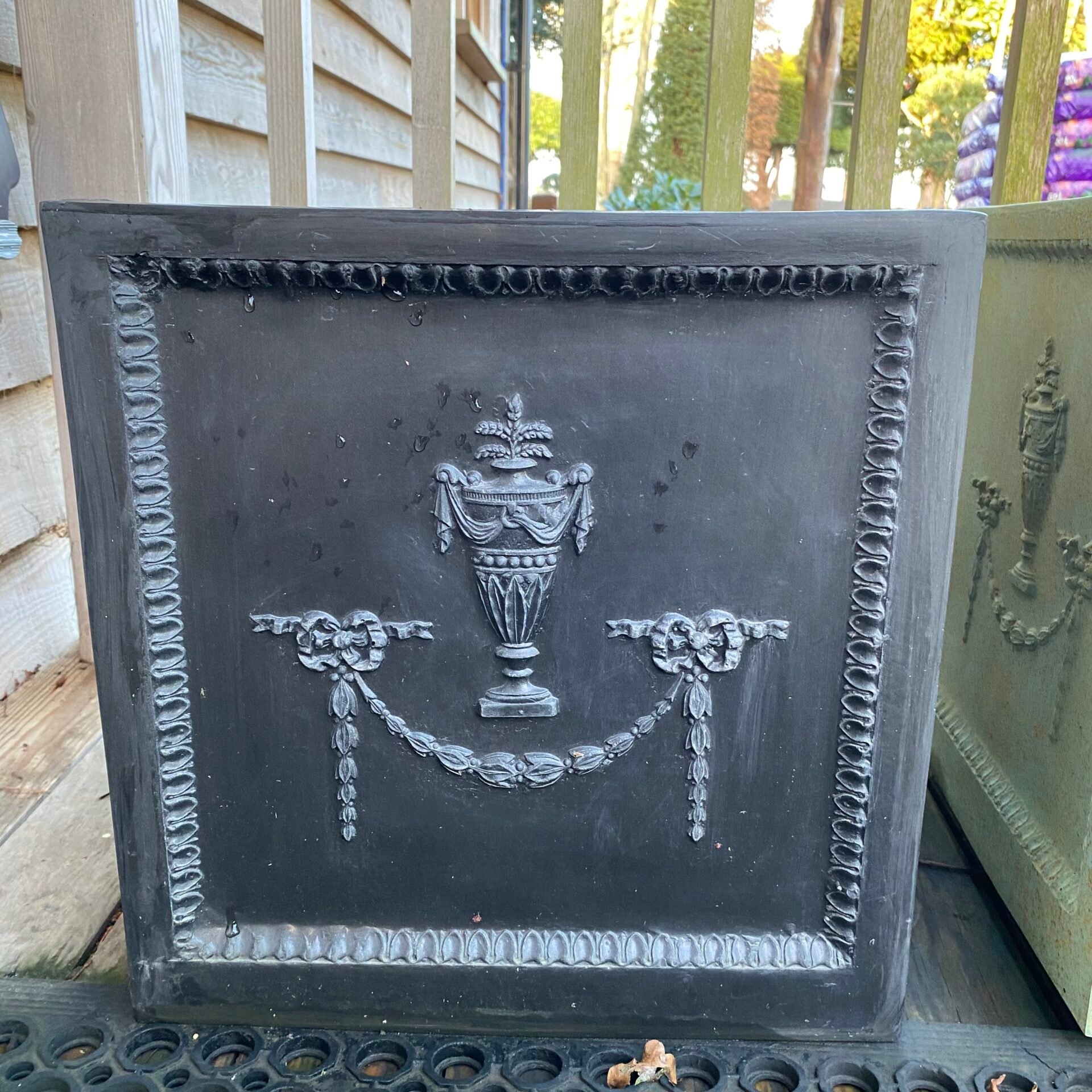 This plant pot is based on the formal architecture of the 18th Century Georgian architect Robert Adam. The delicate design depicted on the planter is definitive of Adam's formal style.