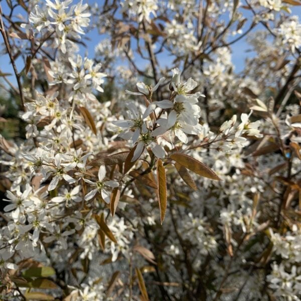 Upright multi-stemmed deciduous tree with masses of white flowers in late winter. Green leaves turning bright red/orange in the autumn. Could reach 15ft after 20 years. The fruit is sweet and edible hence the name. From Canada and USA.