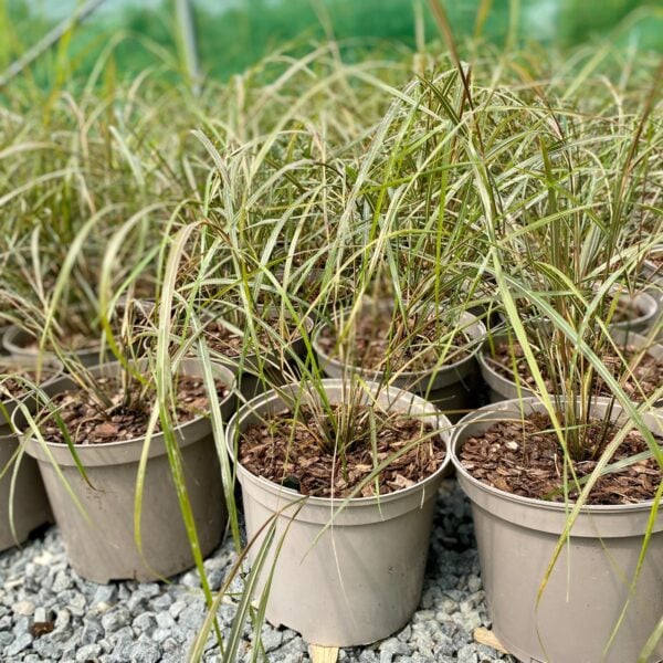 Formerly known as Stipa arundinacea. Fine, wavy grass from New Zealand with flower heads creating a reddish mist. 2ft x 2ft.