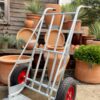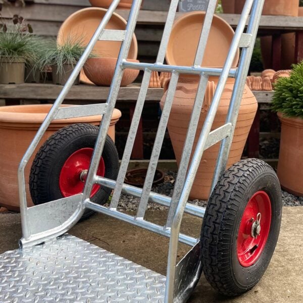 The Original Architectural Plants Sackbarrow is versatile and durable. Designed to make transporting heavy loads simple and efficient, it is especially suited for gardens, construction sites, and landscaping projects. Built from robust materials, it has a sturdy steel frame and ergonomic handles to ensure control and comfort during use. It provides stability and maneuverability on uneven terrain and is ideal for navigating both soft garden beds and rough ground. The flat base and angled back supports larger items like pots, plants, and bags of soil, securing them firmly in place to prevent tipping. The first models were designed more than twenty years ago by our Founder, Angus White for our nursery and planting teams to use. We still use these originals today - that's how robust and reliable they are. You'll never need use anything else again.