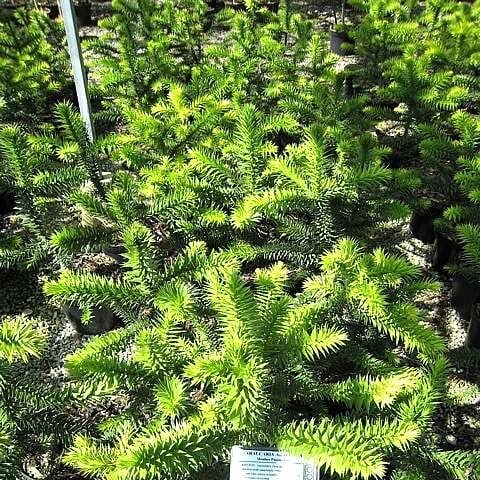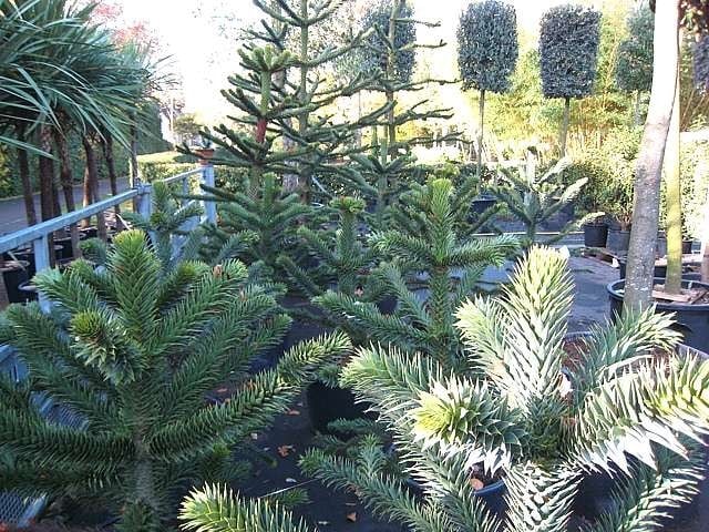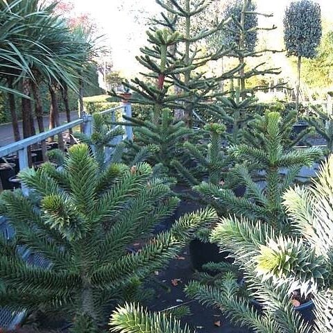 Loved and hated in equal measure, primitive and unpredictable. Unpredictability seems a hall mark of the primitive and when we describe a plant as primitive it's because there's fossil evidence to tell us that the plant we know hasn't evolved for several million years. Horticultural Coelacanths. There's an avenue at Bicton Horticultural College near Sidmouth which demonstrates most eloquently why it's not really suitable for an avenue as every single tree is a different shape and a different size. Try them as a grove - works wonders. The seeds are delicious but try not to eat them - give them to us instead and we'll turn them into trees. Dr Menzies was surgeon on the Discovery with Capt. Cook when they visited Chile in the 1770s. He was given some seed for his pudding at a dinner party but instead of eating them, stuffed them in his pocket and grew some seedlings. These are said to be the first introduction of the tree to Britain. They are happy in sun or shade but - as with most plants - will form a better shape when in full sun.