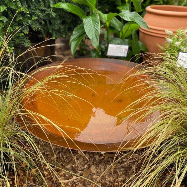 Our Arrondi Water Bowls are available in 4 sizes ranging from 60cm to 120cm. They are resistant to all weather conditions and require no maintenance. Each bowl is 3mm thick and has a welded circular base that keeps it stable. The patina acts as a protective barrier and will not penetrate or compromise the structural integrity of the material. As it matures it will not fail to delight, enhancing the seasonal reflections found in your garden. The bowl can be raised or angled using a Corten Steel stand for artful placement among your plants or simply to capture the light all the more effectively.