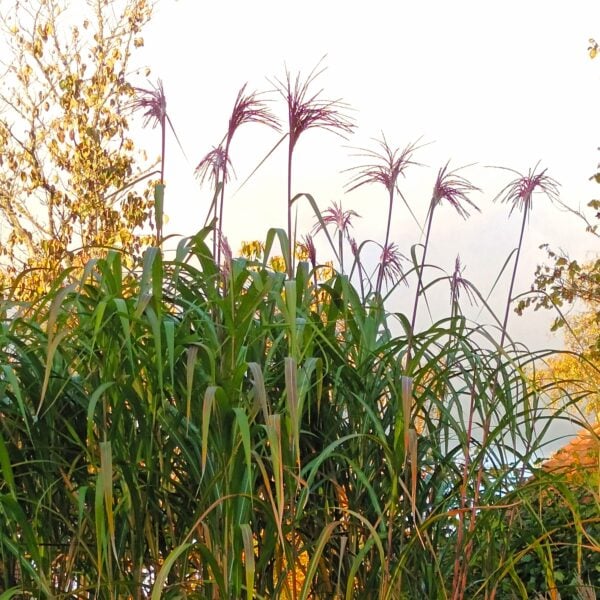 Exotic grass that grows to approx 12ft tall. Unlike bamboo (closely related), it's not evergreen and by Christmas the canes still stand but the leaves will have gone brown and hang from the canes.