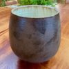 These Stoneware Tulip Vessels are thrown on the wheel and finished by hand. Crafted into a subtle tulip form, each one is unique and decorated with an individual combination of delicate glazes that accentuate the contrasting finishes between the interior and exterior. The exterior layered stoneware finish is satisfyingly textural with additional hints of clustered bronze lustre particles that catch the light with a warming iridescence. The interior is softly ribbed in concentric circles and the pastel shaded tin/chromium glazes applied to embellish this texture.