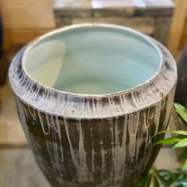 These Large Stoneware Vessels are thrown on the wheel in three sections, joining the sections with additional slip and then throwing a coil to create the rim.