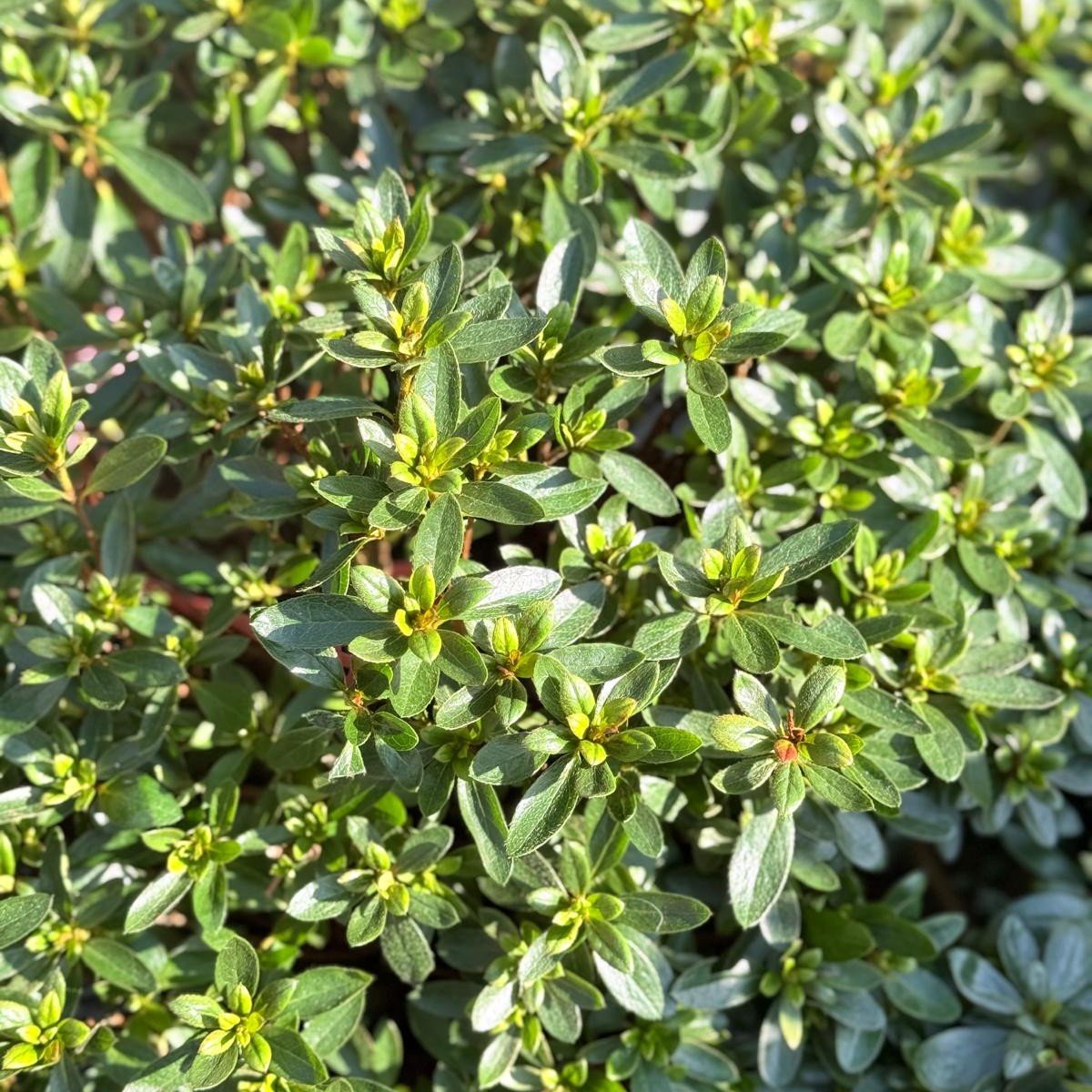 Japanese evergreen Azaleas need well drained acidic soil. Slow growing, free flowering (red, white, pink and purple) to about 5ft after many years. In Japan, they clip them. Nice little blobs.