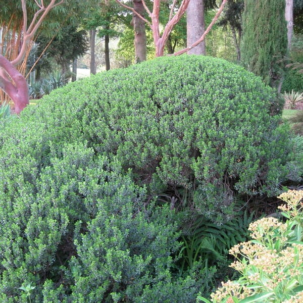 Having described it as one of the wonders of the world, there are always 'ifs' and 'buts' are there not? Baccharis has a slightly unfortunate habit that we have yet to diagnose but it rarely threatens its existence : from time to time - just occasionally - bits die and occasionally, the whole thing dies. You get to know this habit and will remove the offending branch as soon as it discolours. On older plants the removal of a branch exposes sinewy branches within - which can be a good effect on its own. Nature abhors a vacuum and the offending space soon grows over. Even when the whole thing dies, they still have the spooky habit of reappearing. Like a phoenix. Despite this inconvenient habit, we love it and have used it in many gardens - even right on the coast. It's beauty (especially when clipped) completely eclipses these occasional lapses. Any reasonably well drained soil - but lots of light (full sun preferably) and even when not clipped it rarely exceeds 4ft in height. Having evolved in some of the windiest places on earth, it's found that growing 'out' rather than 'up' works best. Salt tolerant.