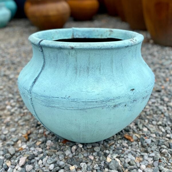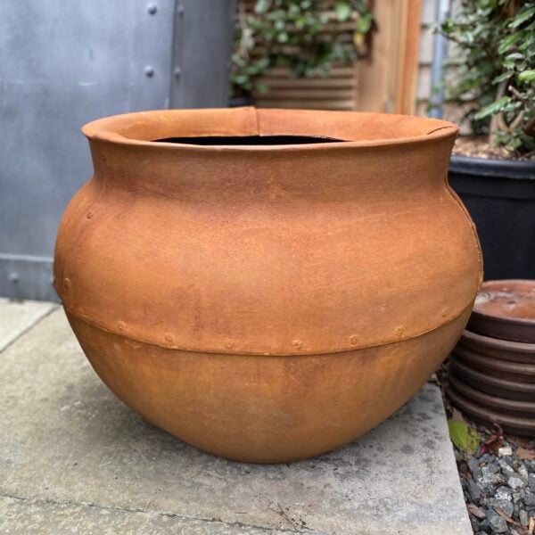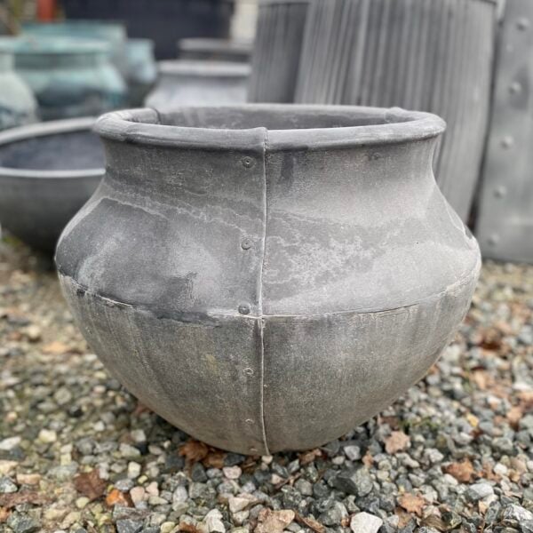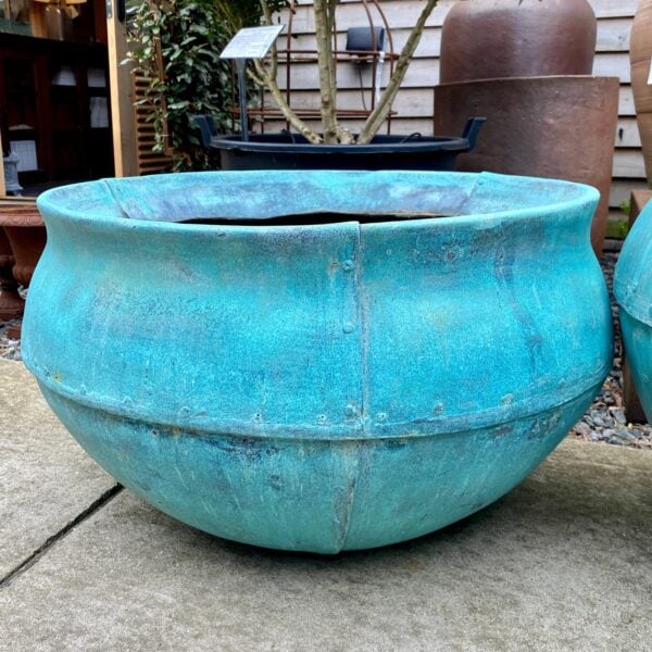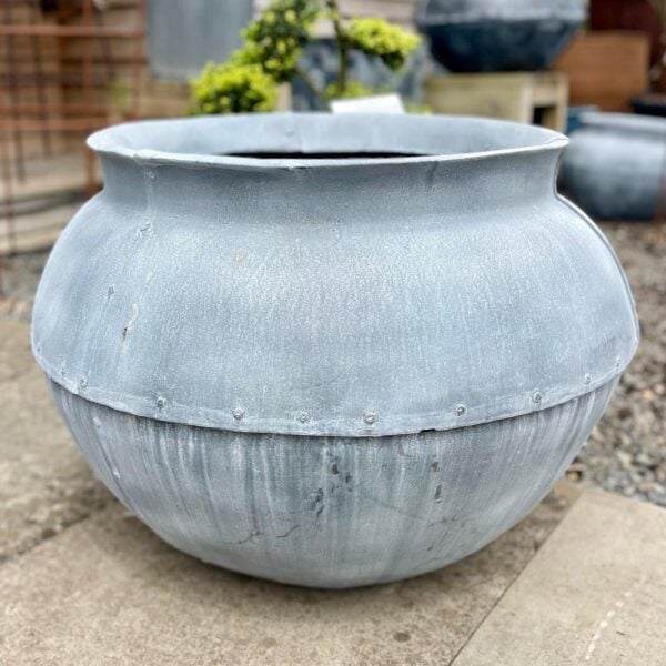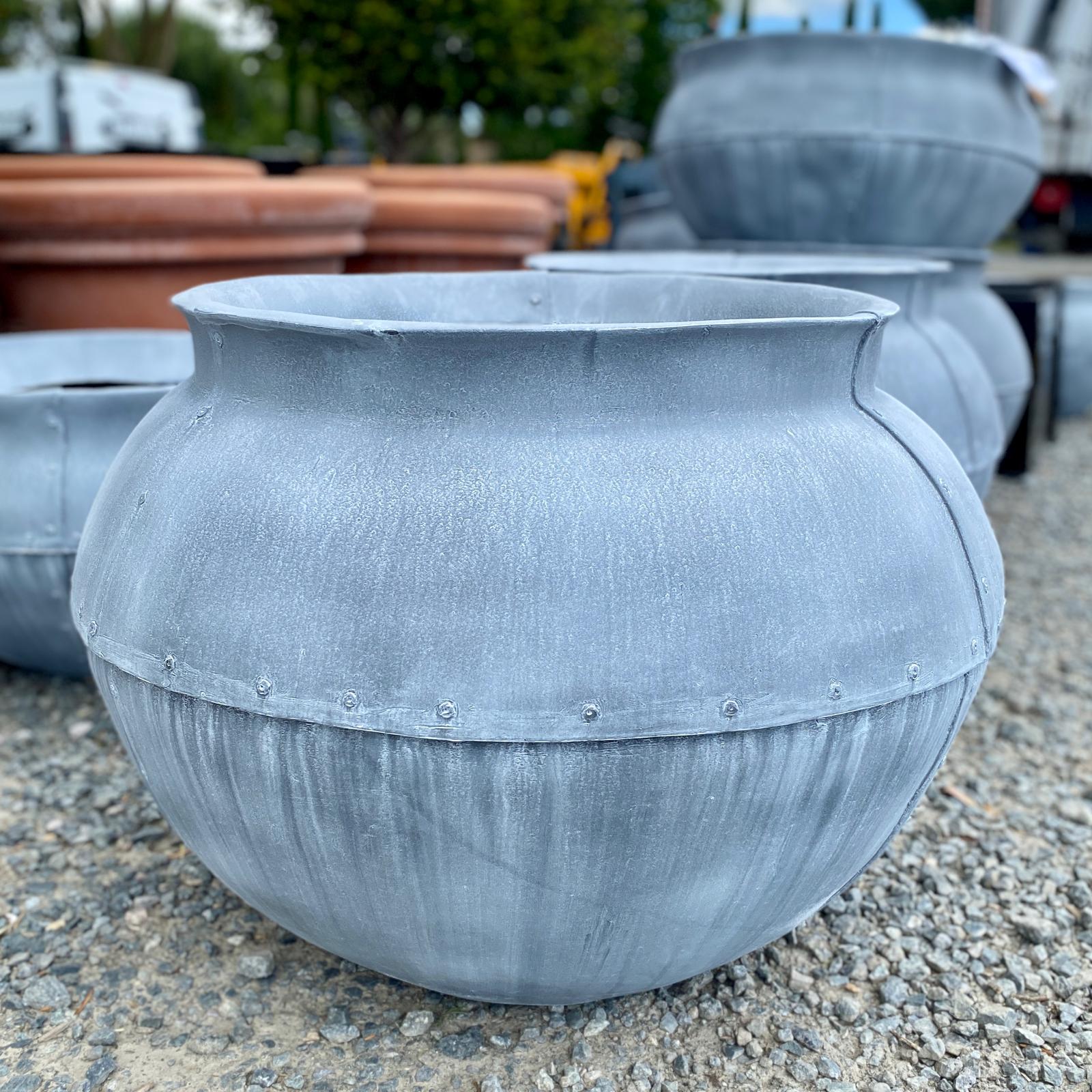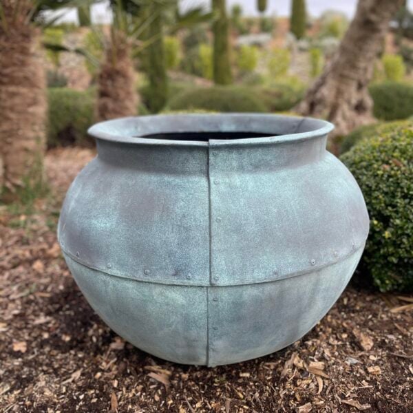 Made of a carbon fibre composite. These Bell Jar Planters are available in two colours. The detailing of the panels and rivets give the appearance of old weather-beaten copper. Who’d believe they were faux? Incredibly lightweight and even the largest size can be handled easily.