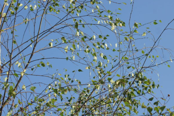 Plant this birch to add year-round interest to your garden. It has a graceful shape, somewhat pyramidal or flame-shaped, with a feathery coating of deep green slender leaves. These will mellow into a rich golden yellow in autumn and tumble away to reveal the star event: a most arresting bark of the brightest white. Chiffon-curls of papery bark peel away from the trunk and branches to expose pale apricot layers beneath. These freshly-revealed splashes of colour rapidly turn a luminescent all-over white.