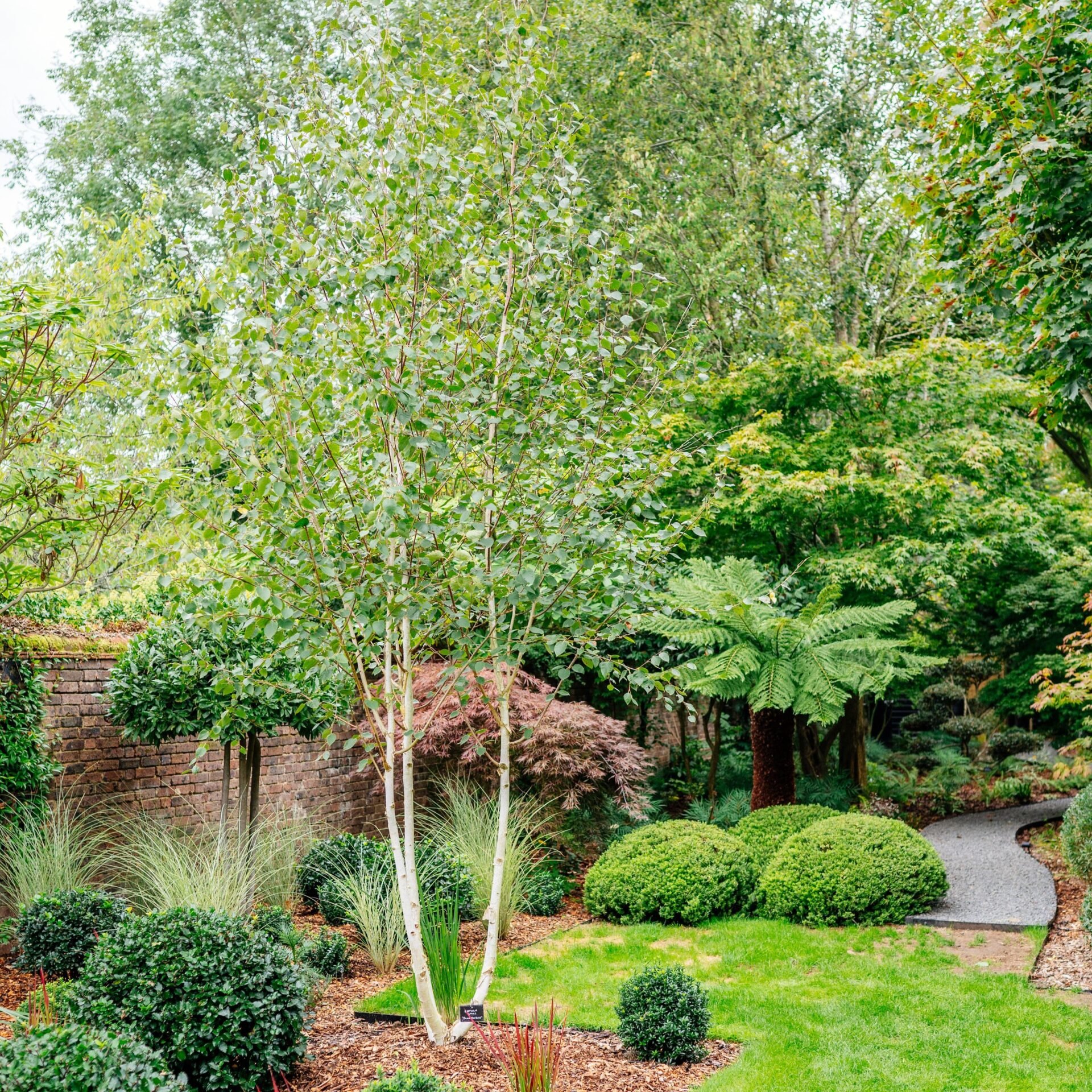 Deciduous and hardy and very, very pretty. Not quite your average birch. In 1993, an eagle-eyed Mr Doorenbos spotted this gleaming gem of a tree in the Netherlands. Slender stems can reach around 6 metres in height with a 5 metre spread, and it has a loose crown of small delicate leaves which are full of movement.