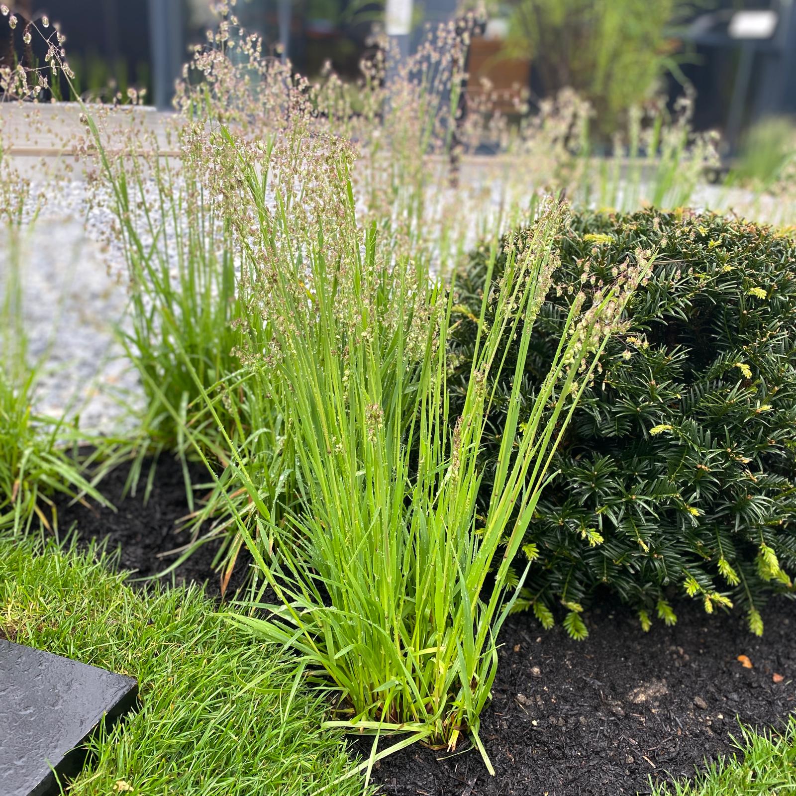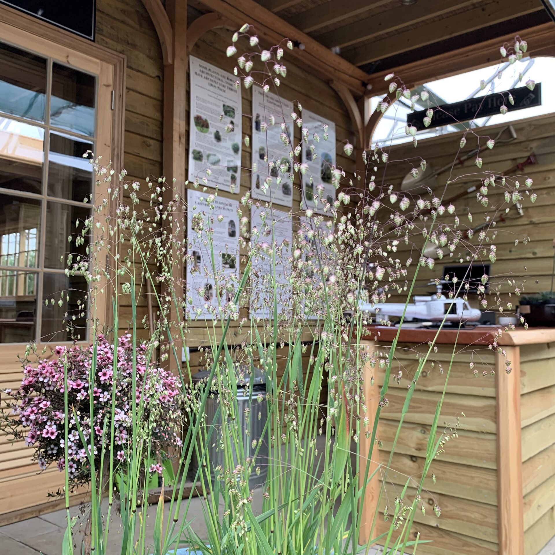 Known variously as Tommy Totters, Dithery Dock or Toddling Grass the flowers and seeds of this semi-evergreen, short-lived perennial grass quiver and shake on fine wiry stems about the neat grey-green foliage