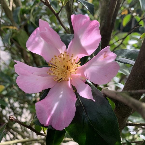 They will grow quite slowly, taking their time to reach an eventual height of around 3 metres by 3 metres. It’s a neat evergreen Camellia whose leaves are small and tidy and with that characteristic gloss on them. Useful for informal hedging, and we like using them to add shapely year-round interest to borders. Nice in pots on a large patio to bring in some evergreen structure.