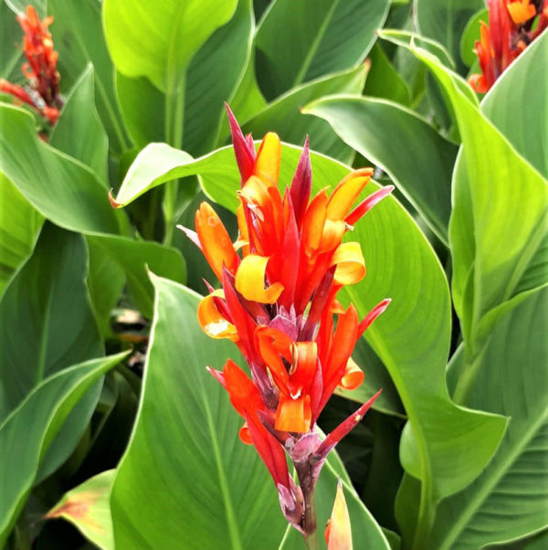 Plant cannas in a warm, sunny position in rich, moist soil. Can be left outside in mild areas but even there it is a jolly good idea to mulch in winter (after removing the collapsed leaves…they won’t stand for the chill). In very warm and sheltered gardens, they may stay green but otherwise they will die down.