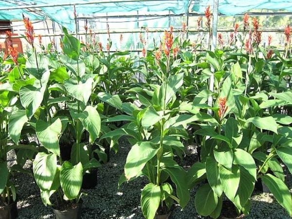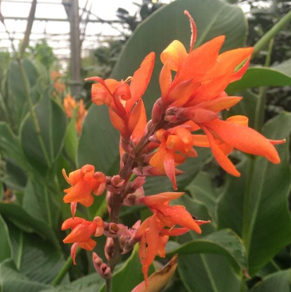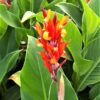 You want exotica? Here it is. Their cartoonishly-large oval leaves are sumptuously green and wrap strong upright stems which heave glorious panicles of flowers up and into your face. Some of the most vibrantly- orange flowers around, enhanced by occasional curling petals of apricot and yellow. These will be produced with enthusiasm but a fertile location is recommended.