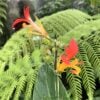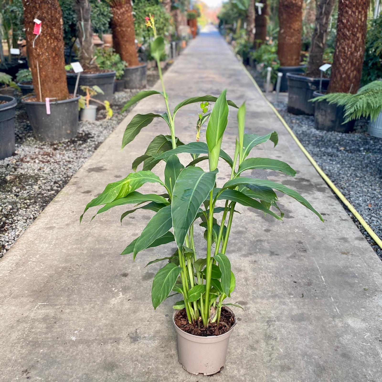A tender, very exotic perennial with flamboyantly-big foliage and dazzling flowers.