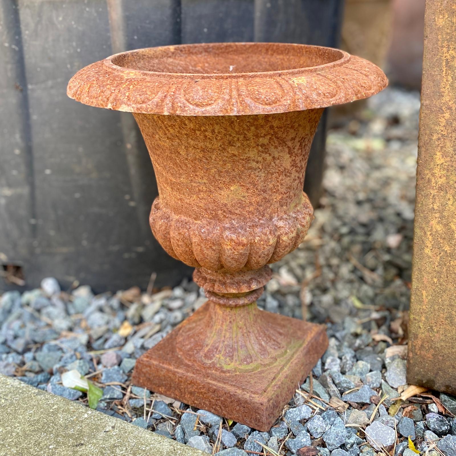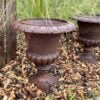 This Cast Iron Osborne Urn makes a dramatic statement piece wherever it is positioned to hold cascading flowers or trailing greenery, with presence and vintage character