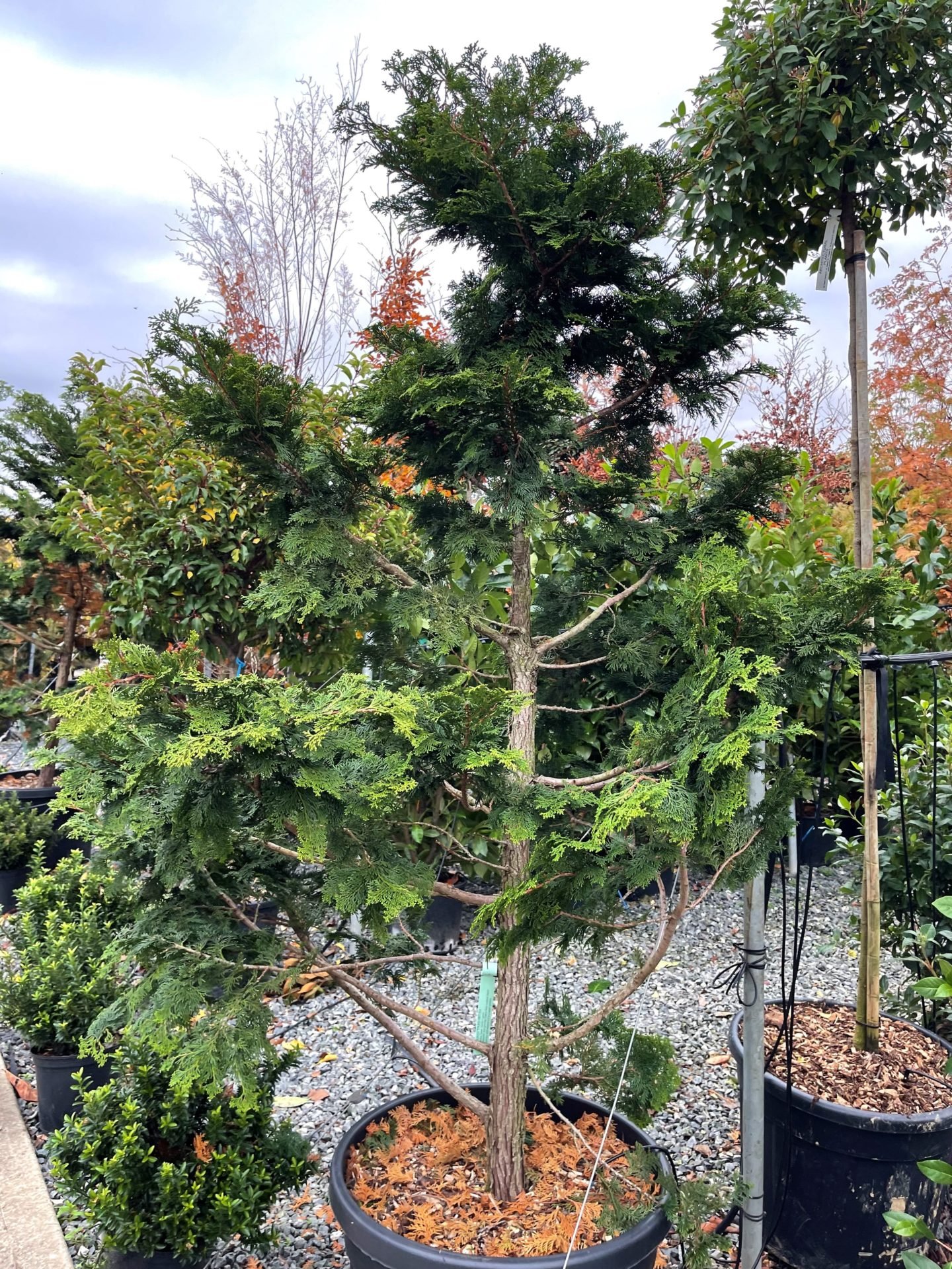While lemon-scented Hinoki wood has been used to create important temples, castles, and shrines in Japan; this beautiful slow growing cypress is equally cherished in parks and gardens in temperate climates. Please contact us for stock availability and sizes.