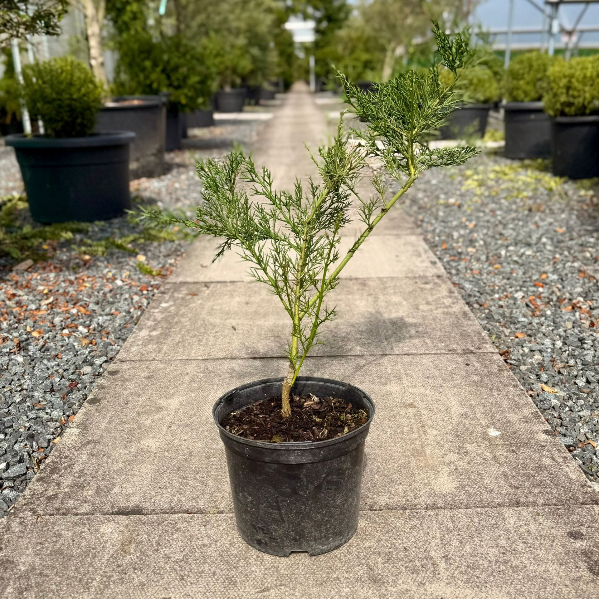 Up close it’s a fractal galaxy of crayon-green stems plastered in tiny spines: also green. These spines are ferocious and among them are teensy leaves spread very sparse. Technically deciduous but you’d never notice. The profusion of spines and density of stems give this bush a hazy outline from a distance that’s deceptively soft and very weird. If this weren’t enough intrigue, tiny pink-tinged white flowers will smother it in summer, each teeny little polyp giving the entire plant a very ‘coral reef’ aspect, especially with each bulbous-based trumpet seeming to pulse, blowing marzipan kisses at each other. It’s these the flutterbyes will flock toward: there’s a fine Red Admiral on one of ours as you can see, and their scent will completely fill your garden. Give it reasonably well drained soil in plenty of light. Often suggested for pots where it can be successful but ponderous, we find. Instead, stick it in the ground in a warm corner and it will gallop. Fantastic for any garden and particularly for connoisseurs of the strange and rare, and perhaps those wanting to really test their creative maintenance skills to the extreme by making it into a single trunked short little tree, all broad and dense. Invest in gauntlets and goggles.