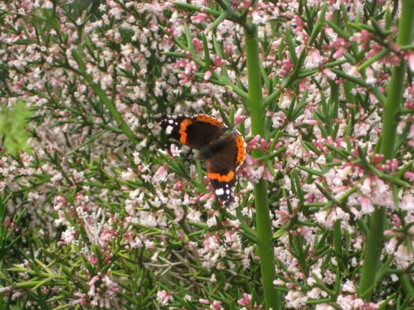 Another one of our beloved South American weirdos. It grows into a little tree (large shrub? - 12 - 15ft after 20 years), is one of the prickliest plants in the world, is perfectly hardy, flowers (masses of little pinky white bells) in summer and winter, is covered in butterflies (when it flowers), the flowers are strongly almond scented, it sulks in a pot but stick it in the ground and it actually grows surprisingly fast.