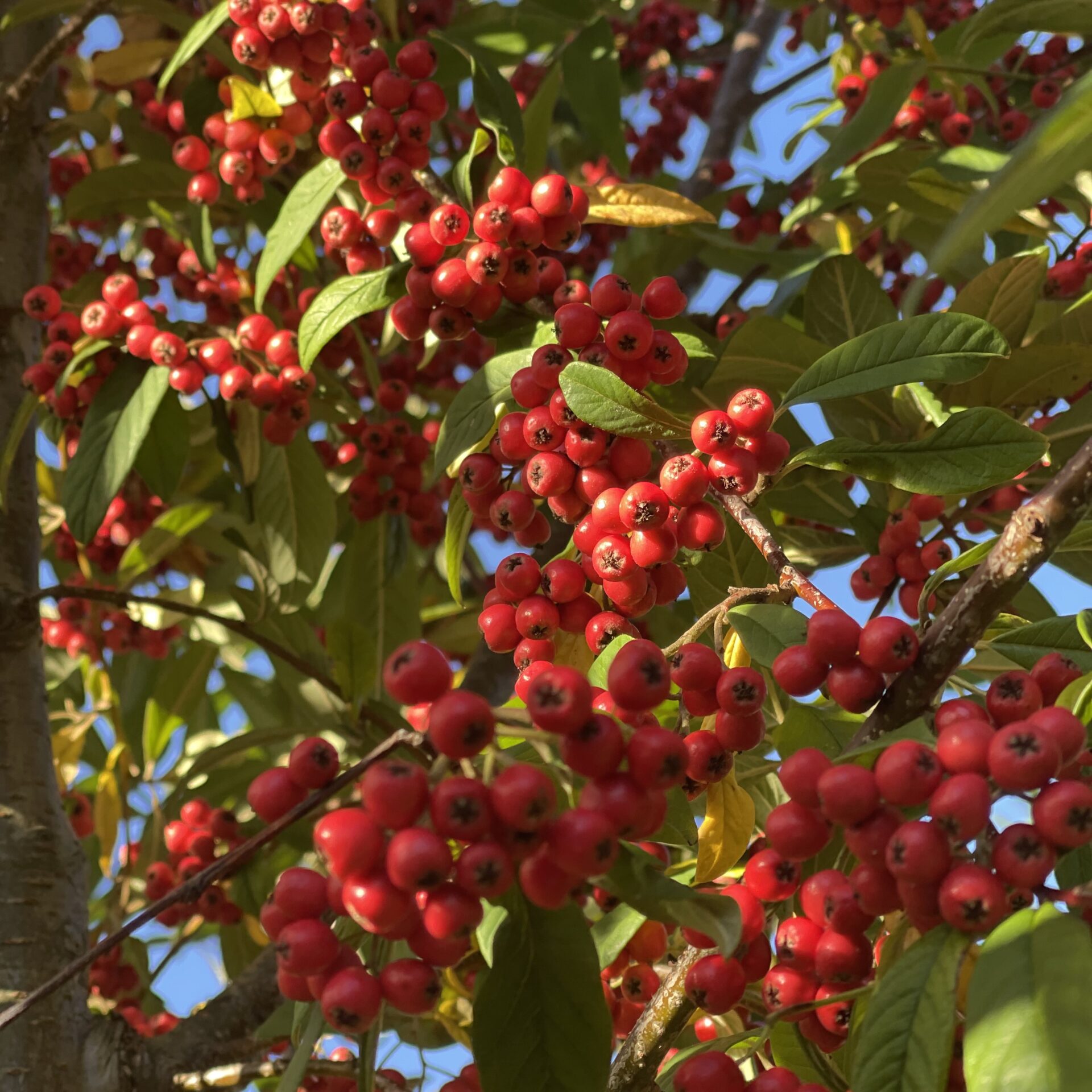 The finest of all the Cotoneasters. Small semi-evergreen tree with white flowers in spring and enormous quantities of red berries in autumn and through the winter. To 20ft after after 30 years. Please contact us for stock availability and sizes.